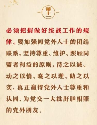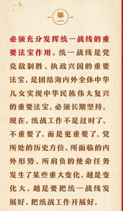 1月16日出版的第2期《求是》雜志刊發(fā)習(xí)近平總書記重要文章《完整、準(zhǔn)確、全面貫徹落實(shí)關(guān)于做好新時(shí)代黨的統(tǒng)一戰(zhàn)線工作的重要思想》。在這篇重要文章中,習(xí)近平總書記充分肯定我們黨百年統(tǒng)戰(zhàn)的歷史性貢獻(xiàn)和新時(shí)代統(tǒng)戰(zhàn)工作取得的歷史性成就,用“十二個(gè)必須”對(duì)關(guān)于做好新時(shí)代黨的統(tǒng)一戰(zhàn)線工作的重要思想作出概括,強(qiáng)調(diào)關(guān)于做好新時(shí)代黨的統(tǒng)一戰(zhàn)線工作的重要思想,是黨的統(tǒng)一戰(zhàn)線百年發(fā)展史的智慧結(jié)晶,是新時(shí)代統(tǒng)戰(zhàn)工作的根本指針,全黨必須完整、準(zhǔn)確、全面貫徹落實(shí)。